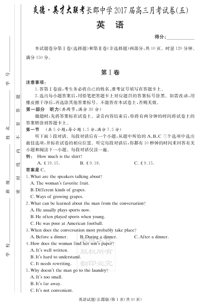 上一篇:【物理】炎德英才大聯考2017長郡中學高三5次月考