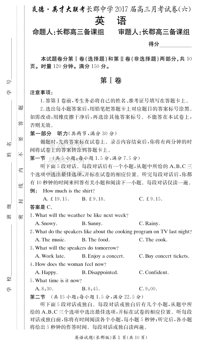 | 資源類別: | 名校月考 | |