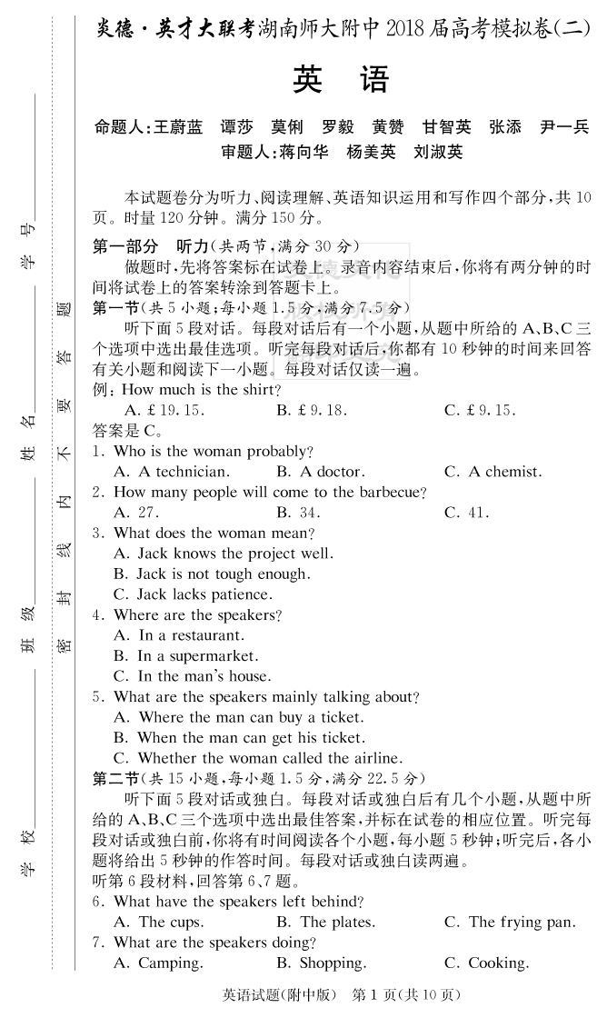 2026湖南師大附中新高考考前小題訓練·英語