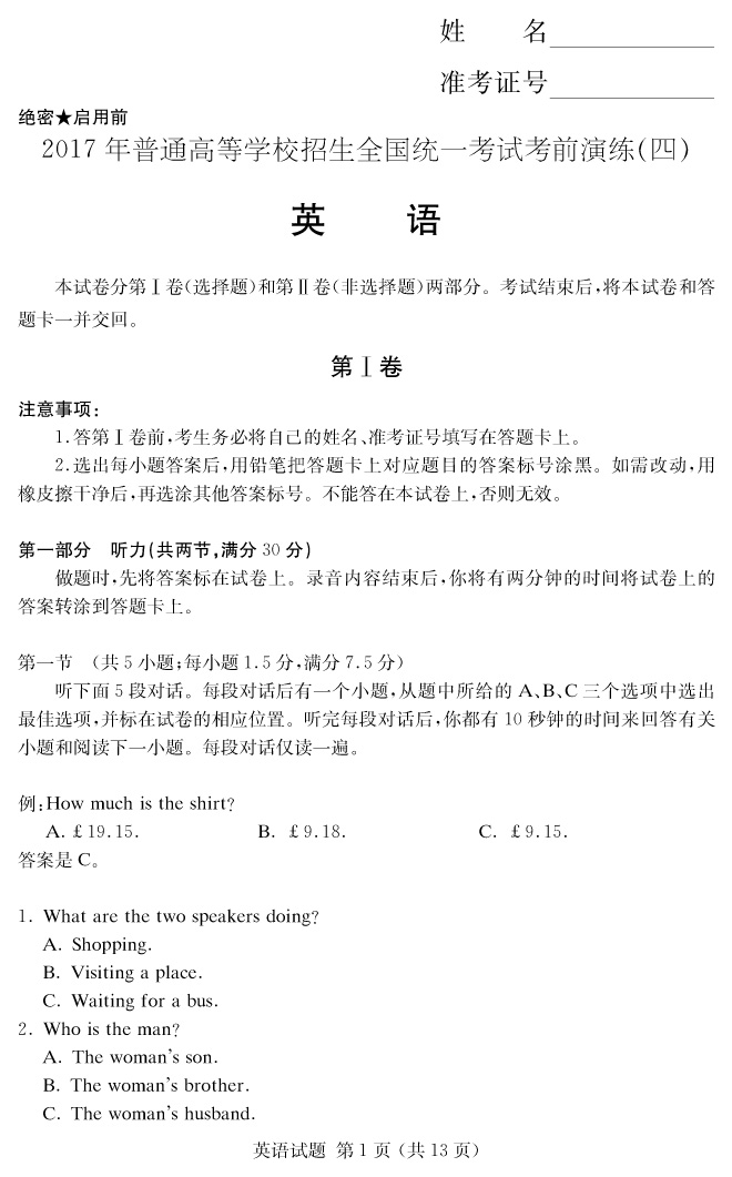 下一篇:【語文】2017年普通高等學校招生全國統一考試考前演練(四)