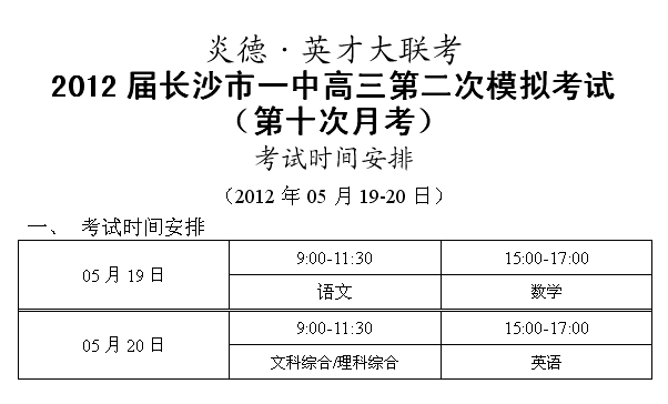 上一篇:炎德英才大聯考長沙市一中2012屆高三第一次模擬(第九次月考)考試時間和范圍