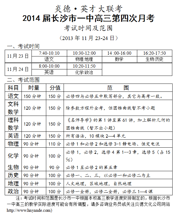 上一篇:炎德英才大聯(lián)考長沙市一中2014屆高三第3次月考考試時間和范圍(2013.10.26-27)