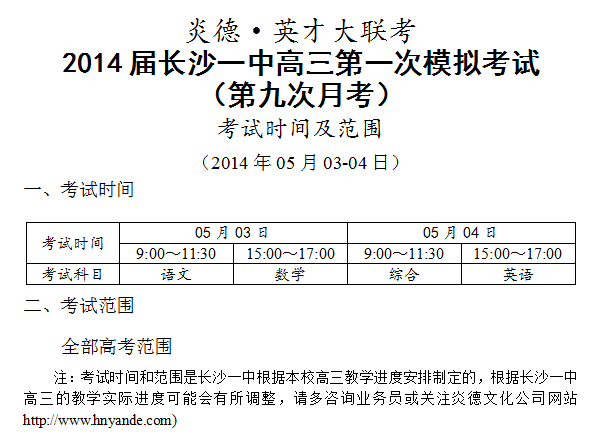 下一篇:炎德英才大聯(lián)考長沙市一中2015屆高三第1次月考考試時間和范圍(2014.08.22-23)