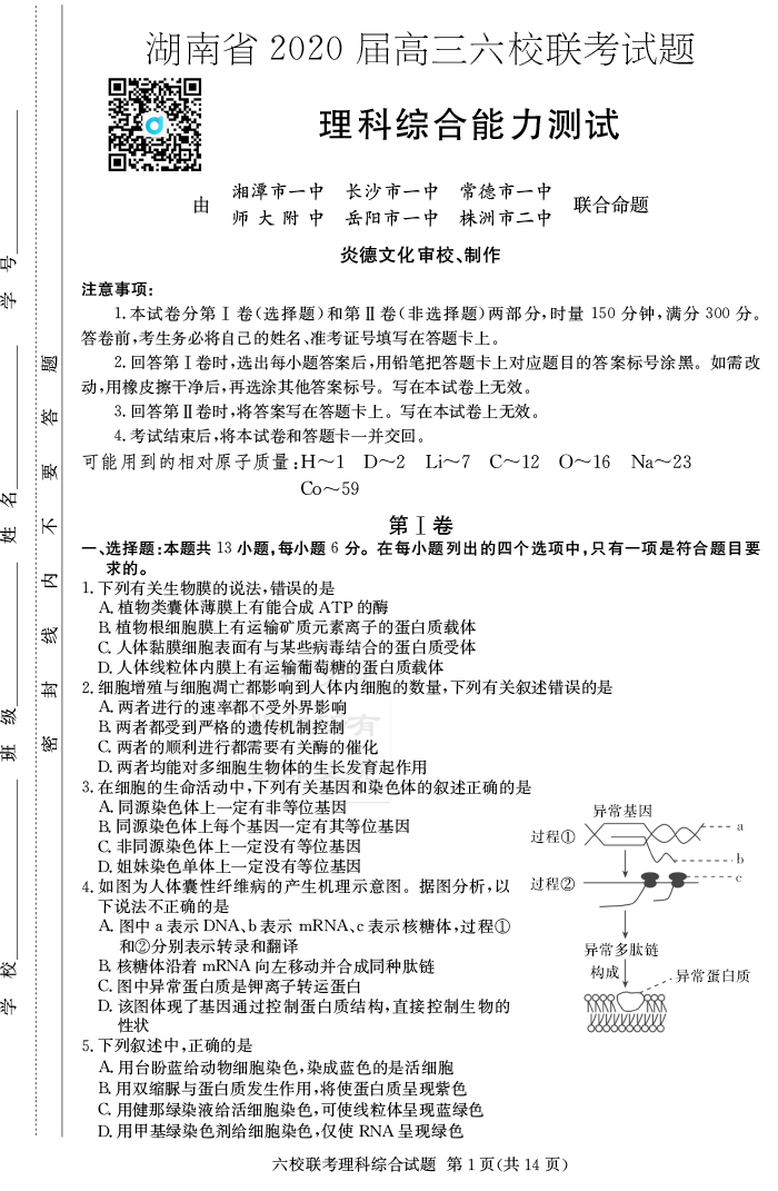 上一篇:【理數】湖南省2020屆高三六校聯考(附中模擬一)