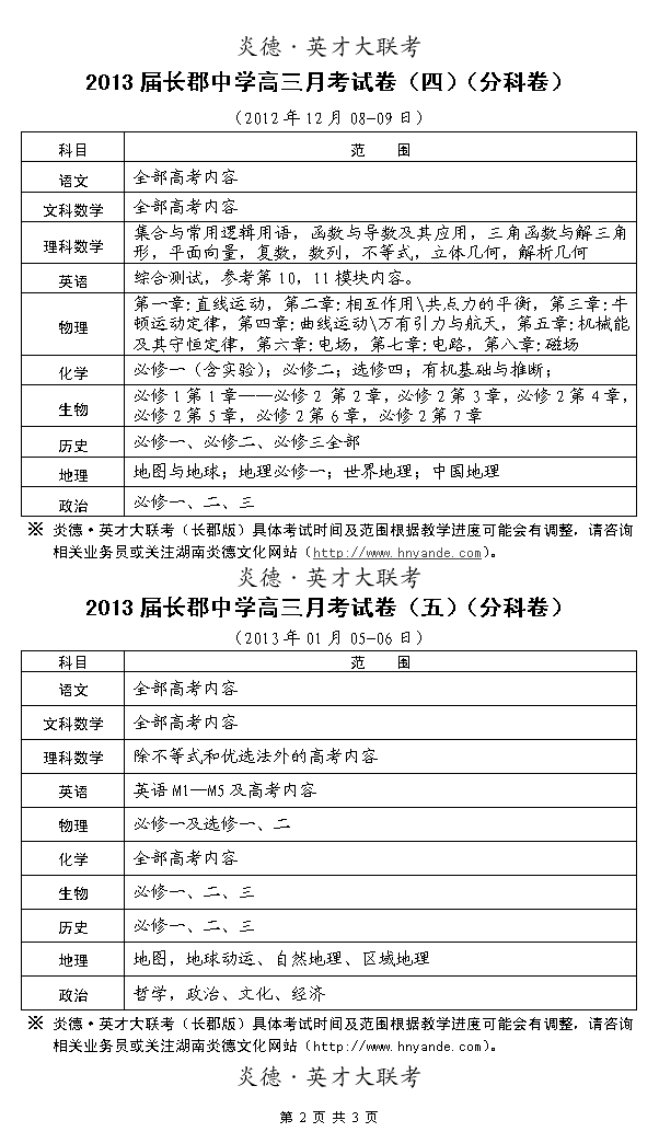 來源:炎德文化點擊:2012-09-11 14:22:49收藏本文當前位置:考試范圍 長郡中學 高三 正文