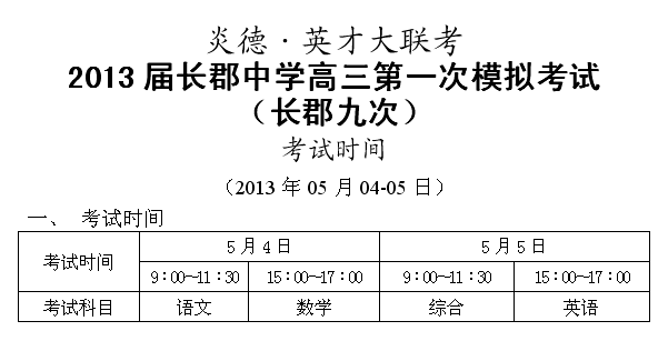 下一篇:炎德英才大聯考長郡中學2013屆高三第十次月考考試時間