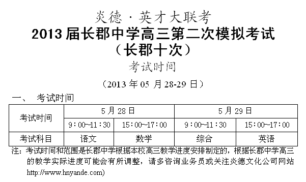 炎德英才大聯(lián)考長(zhǎng)郡中學(xué)2013屆高三第十次月考考試時(shí)間