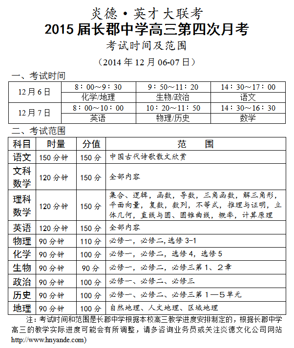 下一篇:炎德英才大聯考長郡中學2015屆高三第5次月考考試時間和范圍(2015.01.02-03)