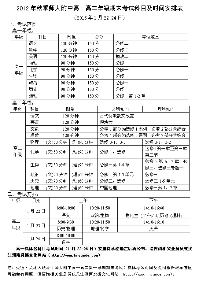 來源:炎德文化點擊:2013-01-15 15:13:31收藏本文當前位置:考試范圍 師大附中 高二 正文