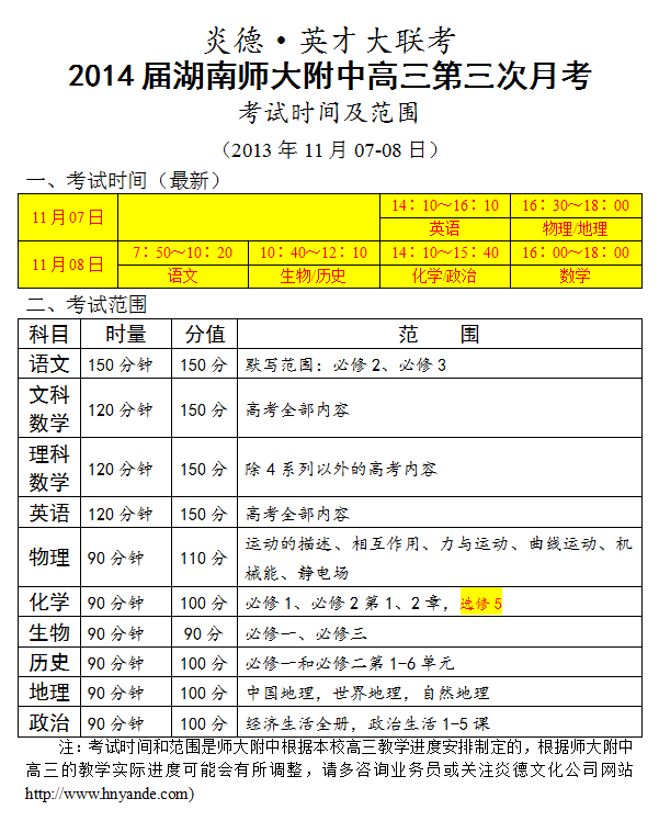 上一篇:炎德英才大聯考師大附中2014屆高三第2次月考考試時間和范圍(2013.10.03-04)