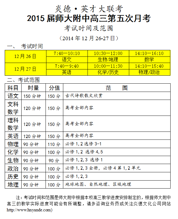 下一篇:炎德英才大聯考師大附中2015屆高三第6次月考考試時間和范圍(2015.01.30-31)