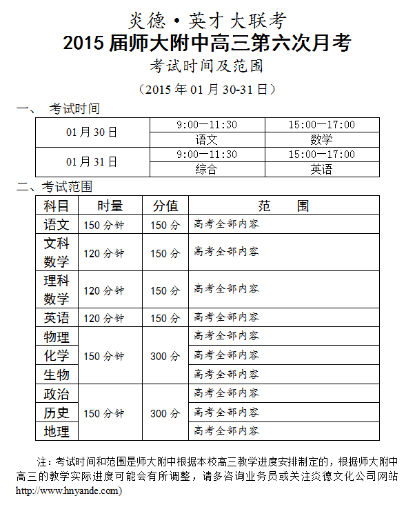 下一篇:炎德英才大聯考師大附中2015屆高三第7次月考考試時間和范圍(2015.02.27-28)