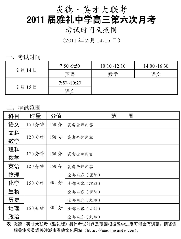 來源:本站原創點擊:2011-02-12 15:04:37收藏本文當前位置:考試范圍 雅禮中學 高三 正文