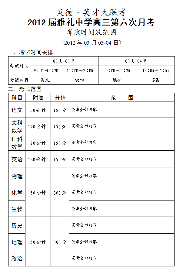 來源:炎德文化點擊:2012-02-29 14:35:30收藏本文當前位置:考試范圍 雅禮中學 高三 正文