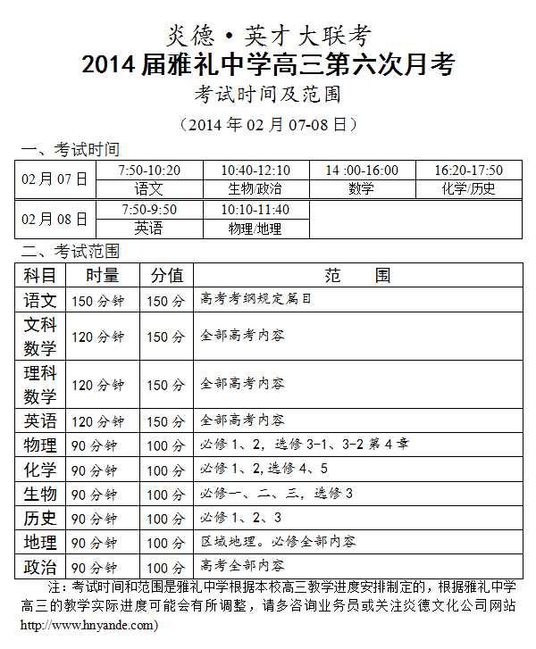 下一篇:炎德英才大聯考雅禮中學2014屆高三第7次月考考試時間和范圍(2014.03.10-11)