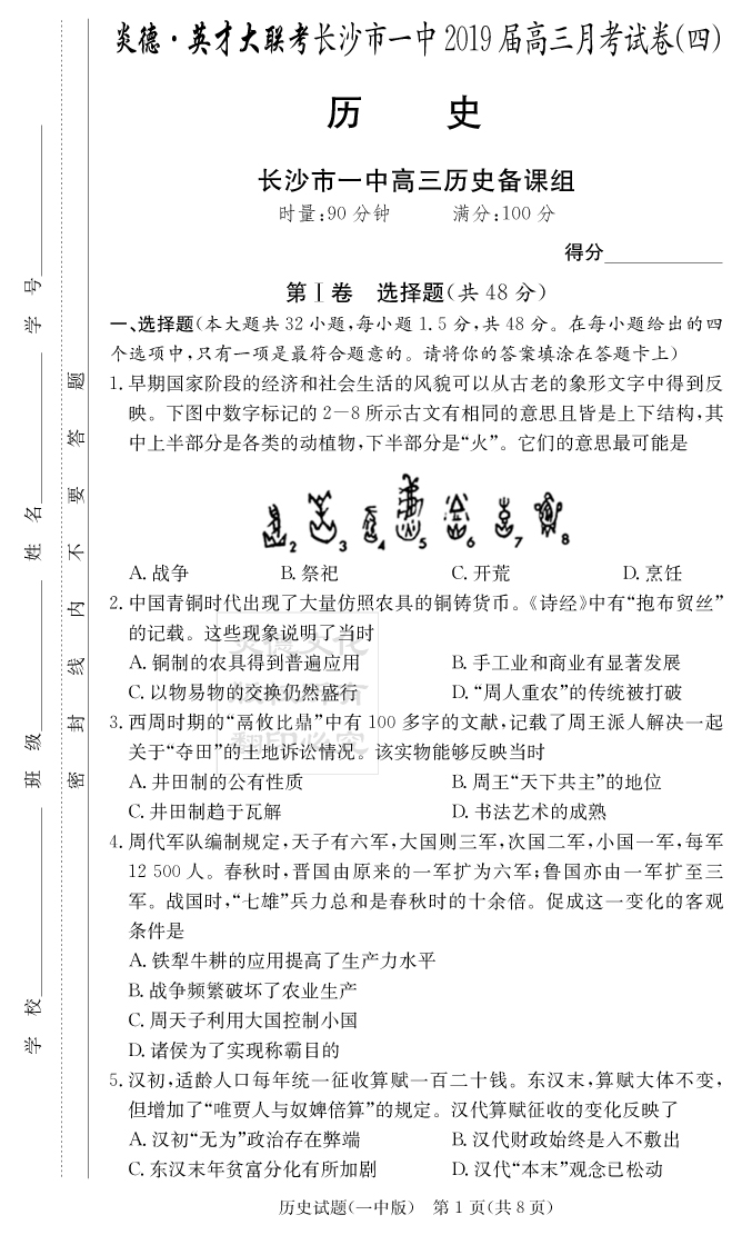 2026湖南師大附中新高考考前小題訓練·歷史