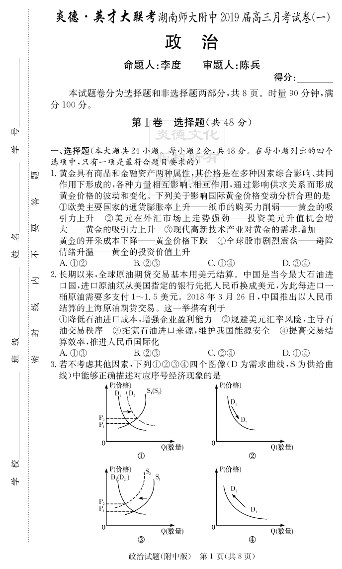 2026長郡中學新高考考前小題沖刺訓練·政治