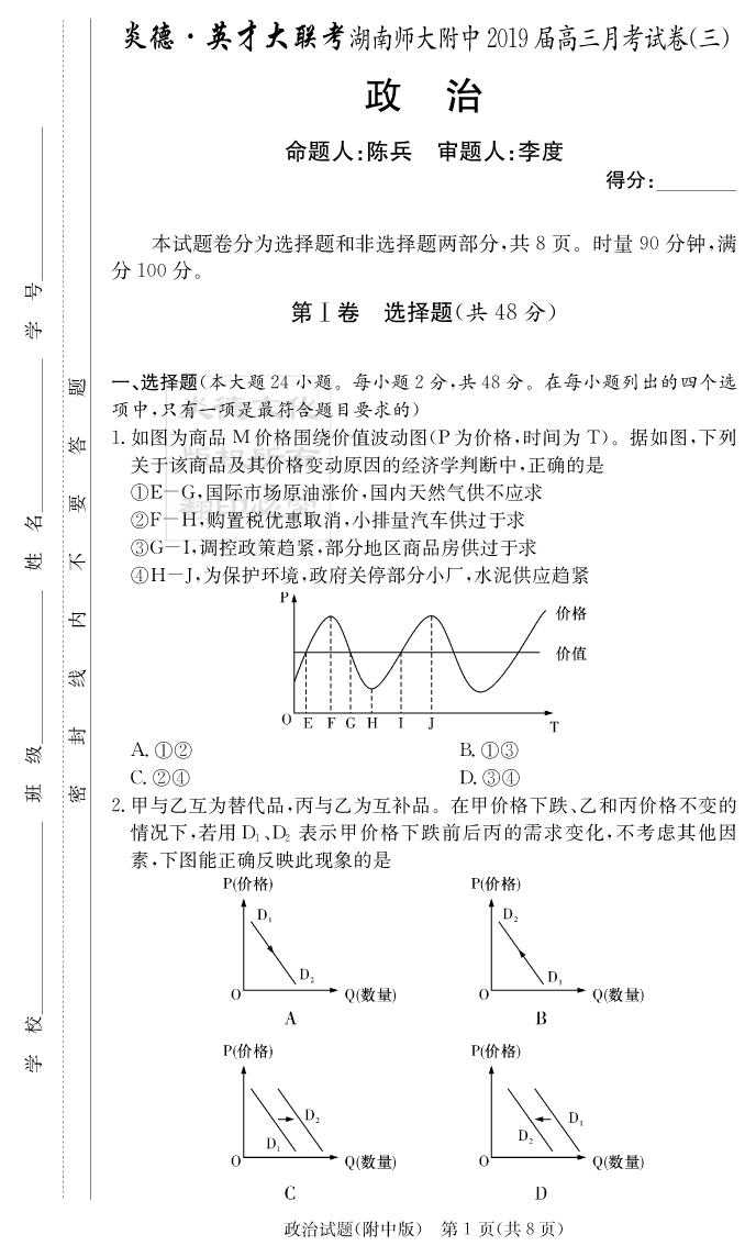 2026長郡中學新高考考前小題沖刺訓練·政治