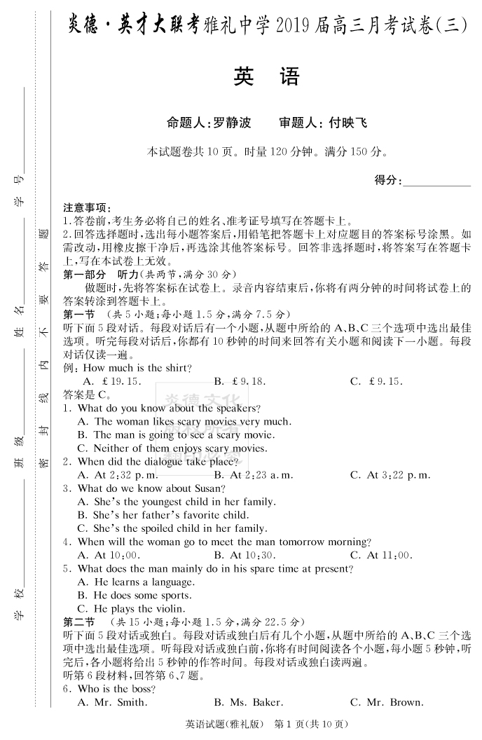 上一篇:【物理】炎德英才大聯考2019雅禮中學高三3次月考