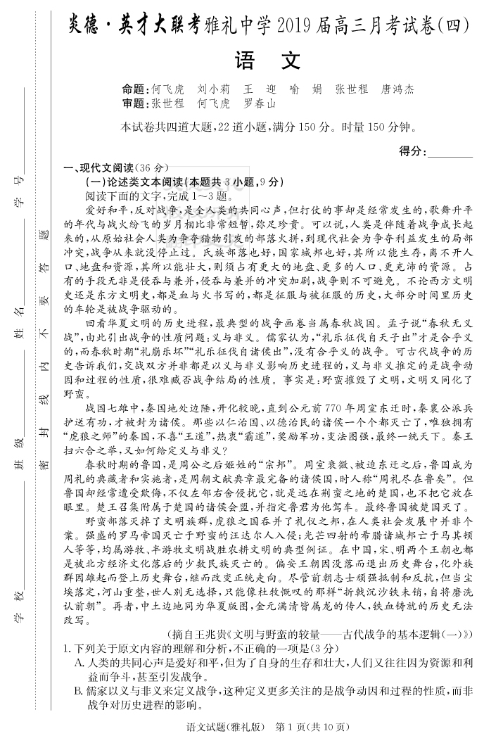 下一篇:【政治】炎德英才大聯考2019雅禮中學高三4次月考