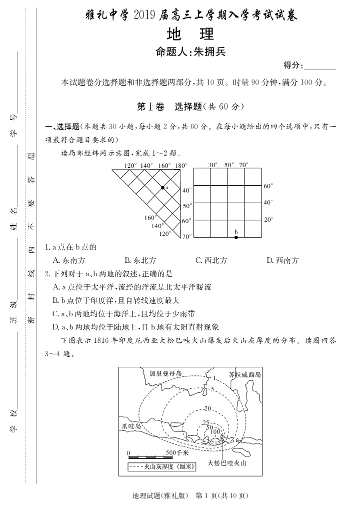 2026湖南師大附中新高考考前小題訓練·地理