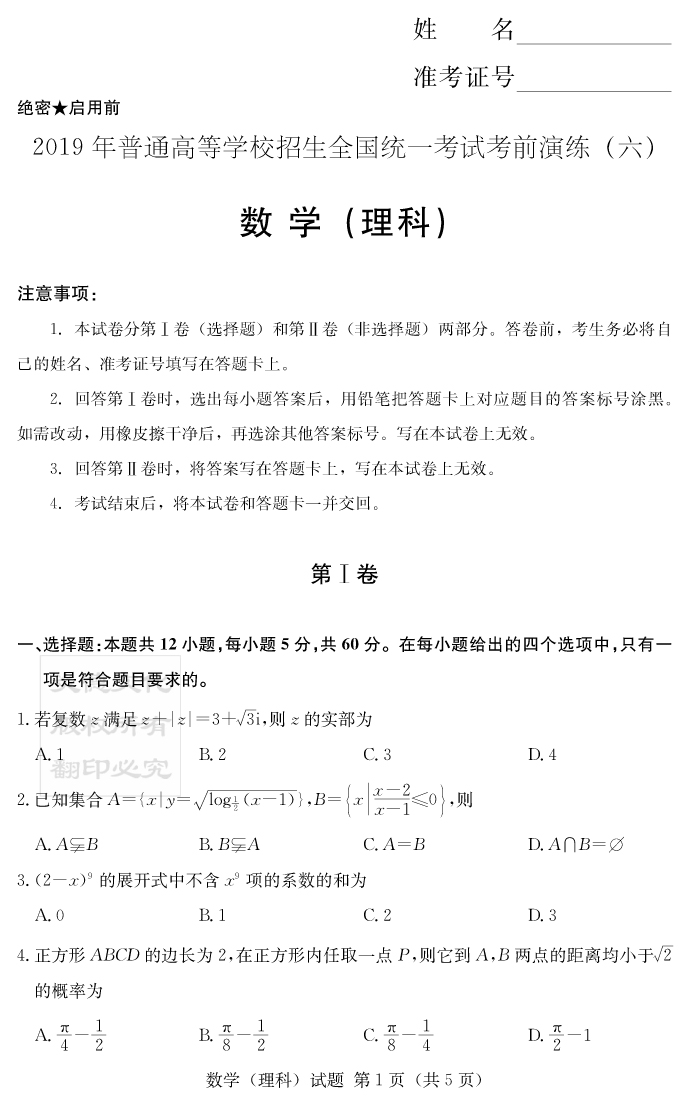 下一篇:【理綜】2019年普通高等學校招生全國統一考試考前演練(六)