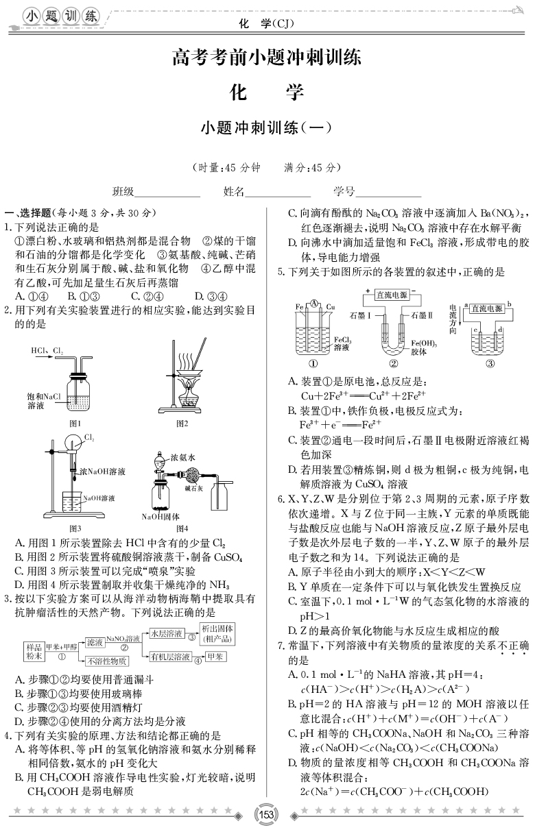 模塊周周清·高中化學·必修第二冊