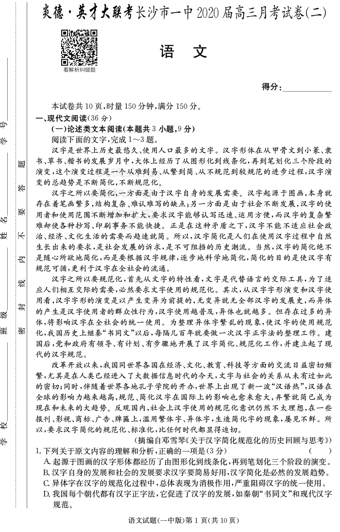 | 資源類別: | 名校月考 | |