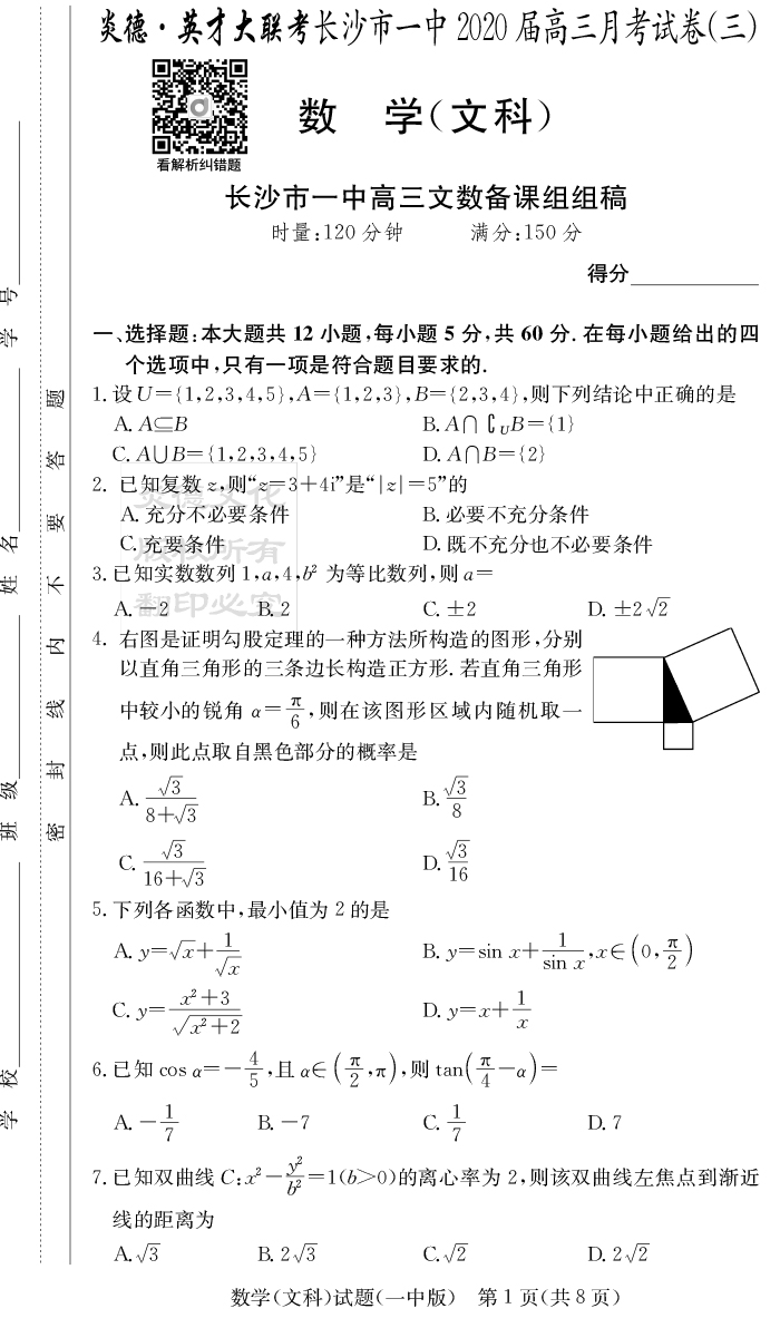 2026長郡中學新高考考前小題沖刺訓練·數學