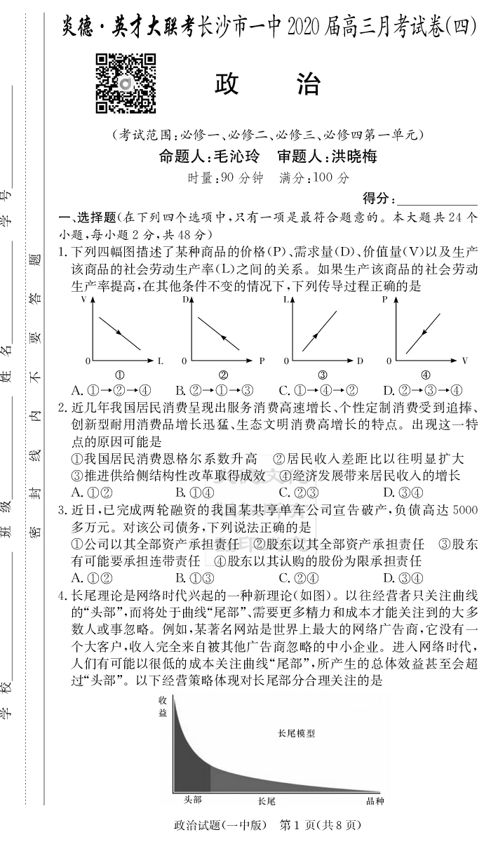 2026長郡中學新高考考前小題沖刺訓練·政治