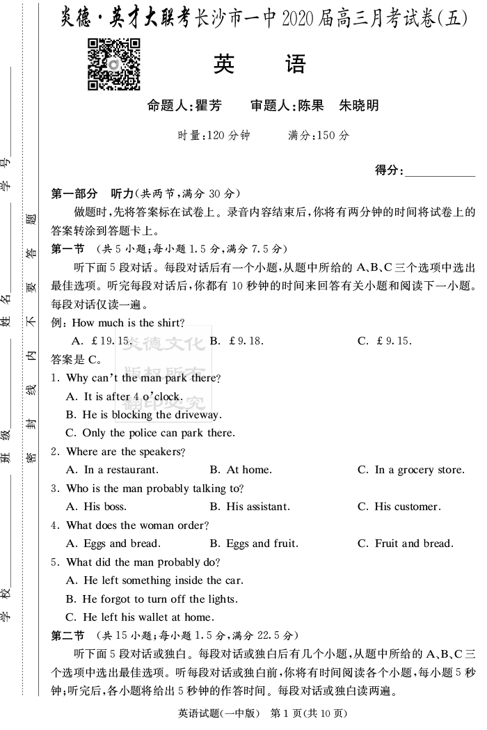 下一篇:【語文】炎德英才大聯考2020屆長沙市一中高三5次月考