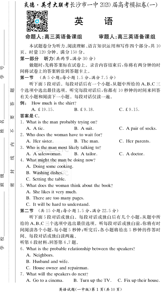下一篇:【語文】炎德英才大聯考2020屆長沙市一中高三9次月考(模擬一)