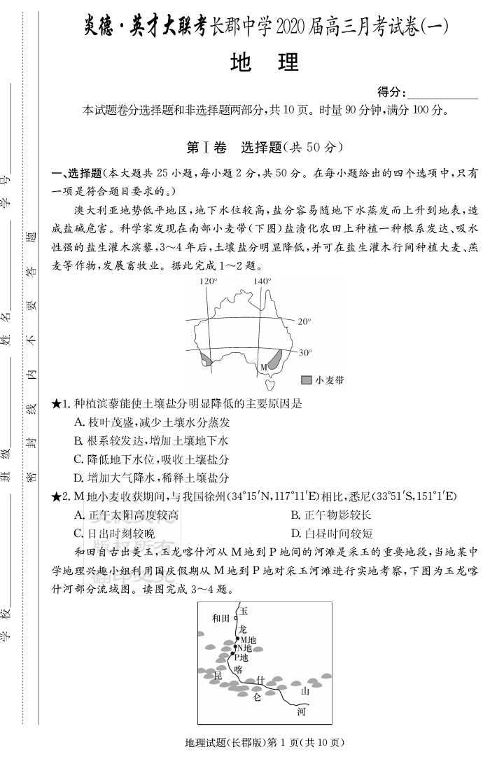 2026湖南師大附中新高考考前小題訓練·地理