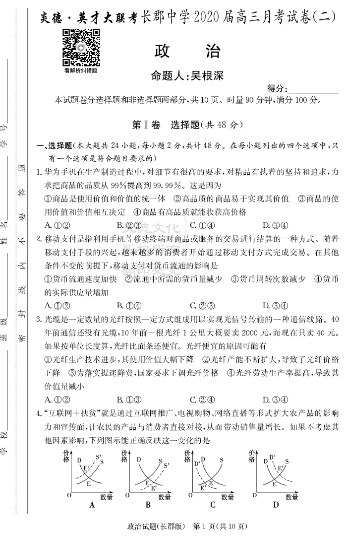 2026長郡中學新高考考前小題沖刺訓練·政治