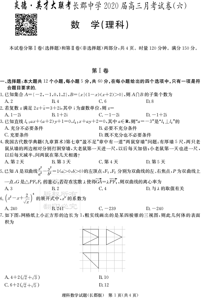 2026長郡中學新高考考前小題沖刺訓練·數學