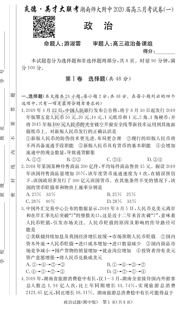 2026長郡中學新高考考前小題沖刺訓練·政治