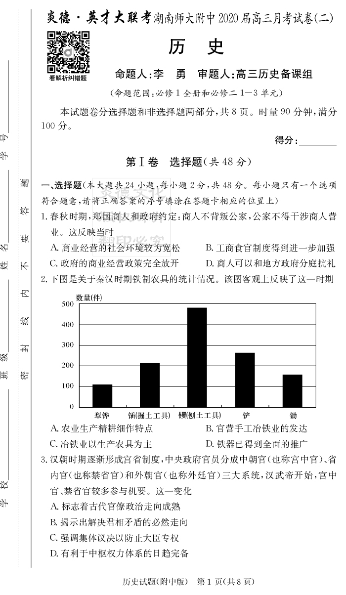 2026年長郡中學備考寶典(高考考前寶典)·歷史傾向