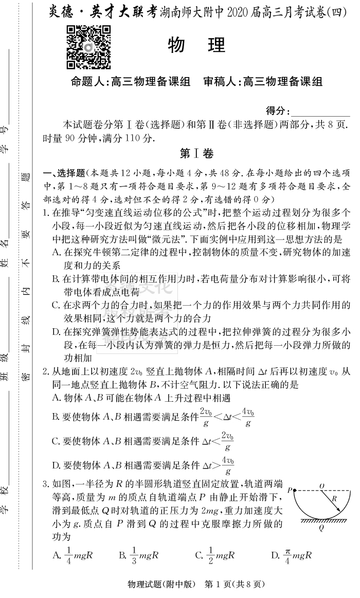 2026湖南師大附中新高考考前小題訓練·物理