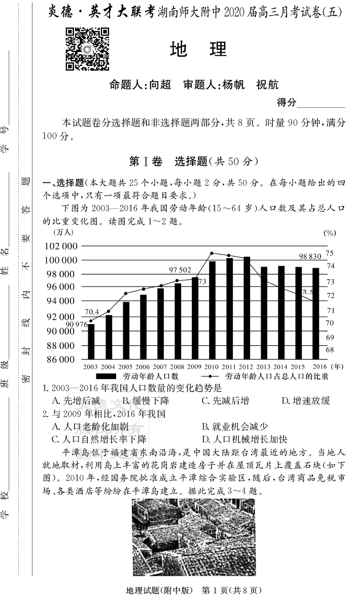 2026長郡中學新高考考前小題沖刺訓練·地理