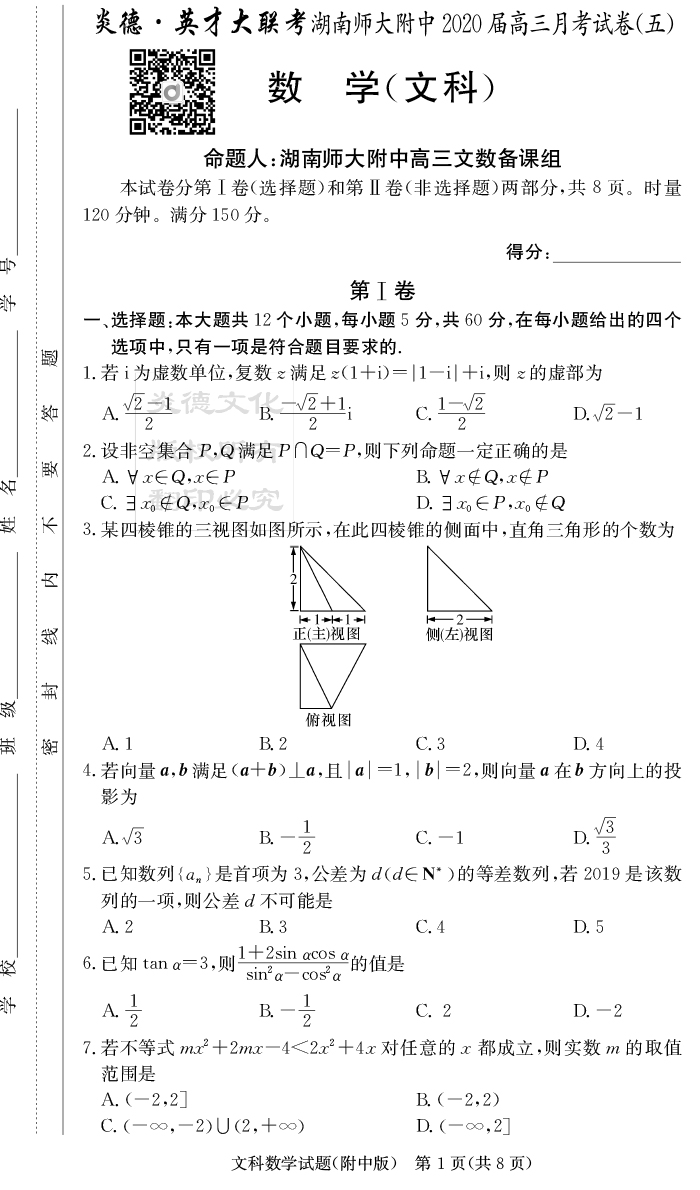 2026湖南師大附中新高考考前小題訓練·數學