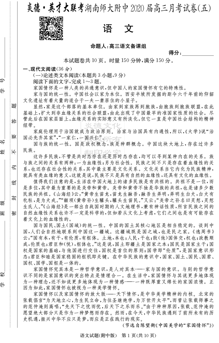 上一篇:【英語】炎德英才大聯考2020屆師大附中高三5次月考