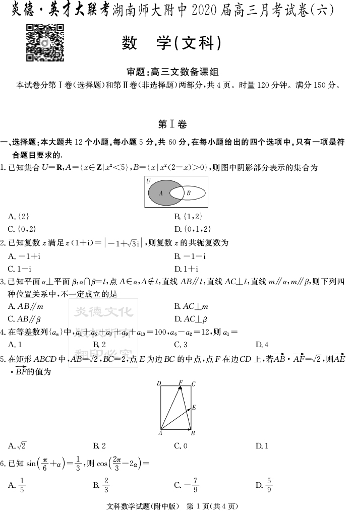 2026湖南師大附中新高考考前小題訓練·數學
