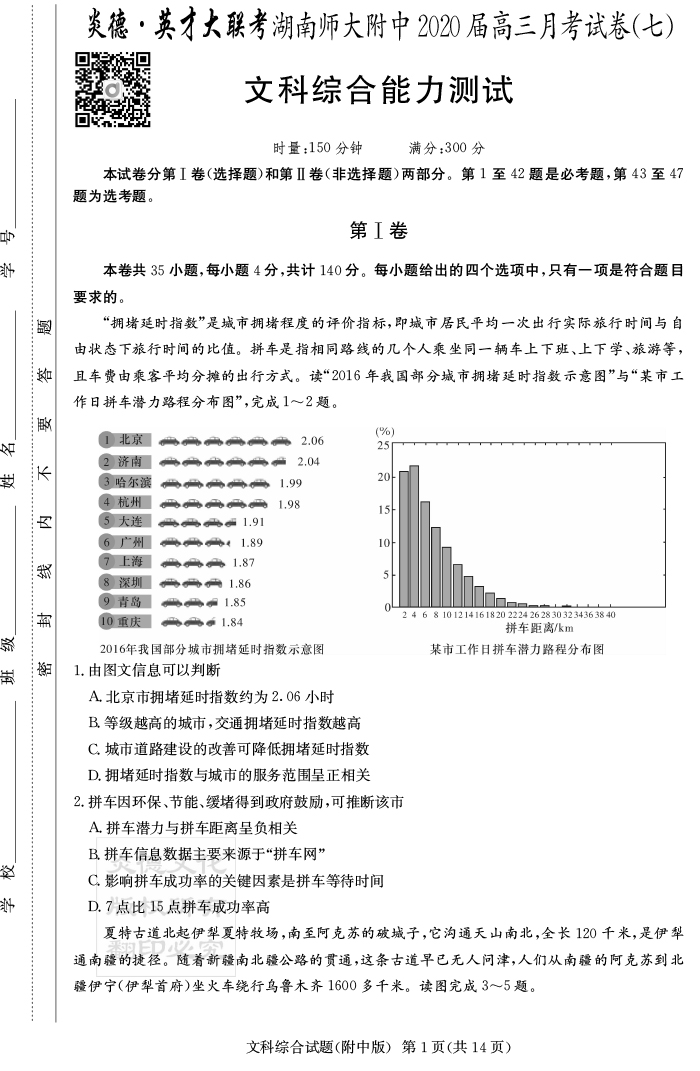2026湖南師大附中新高考考前小題訓練·地理