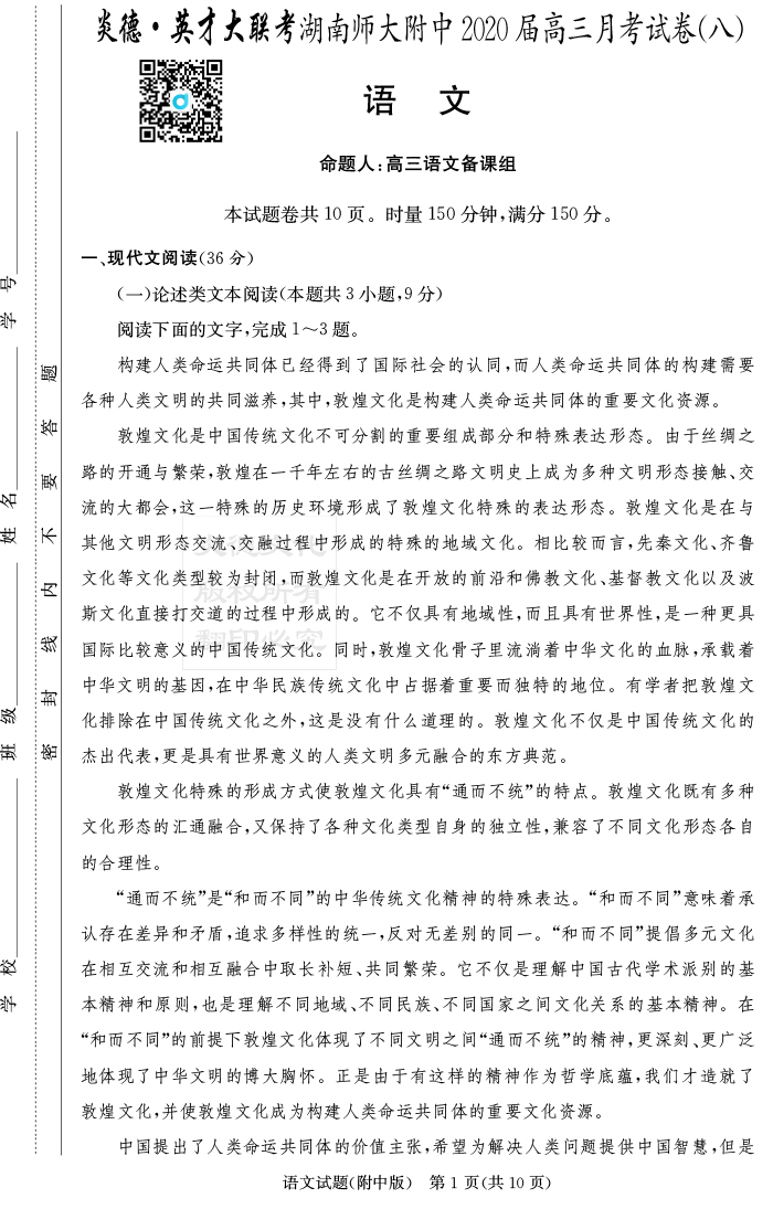 2026湖南師大附中新高考考前小題訓練·語文