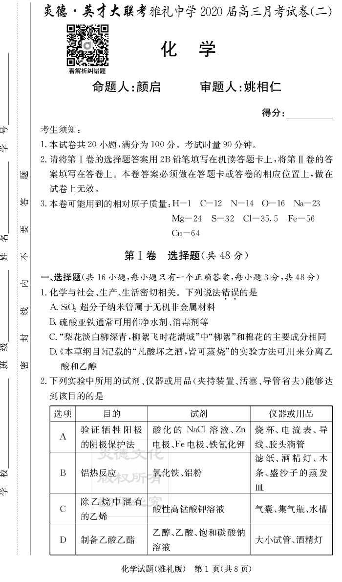 下一篇:【理數】炎德英才大聯考2020屆雅禮中學高三2次月考