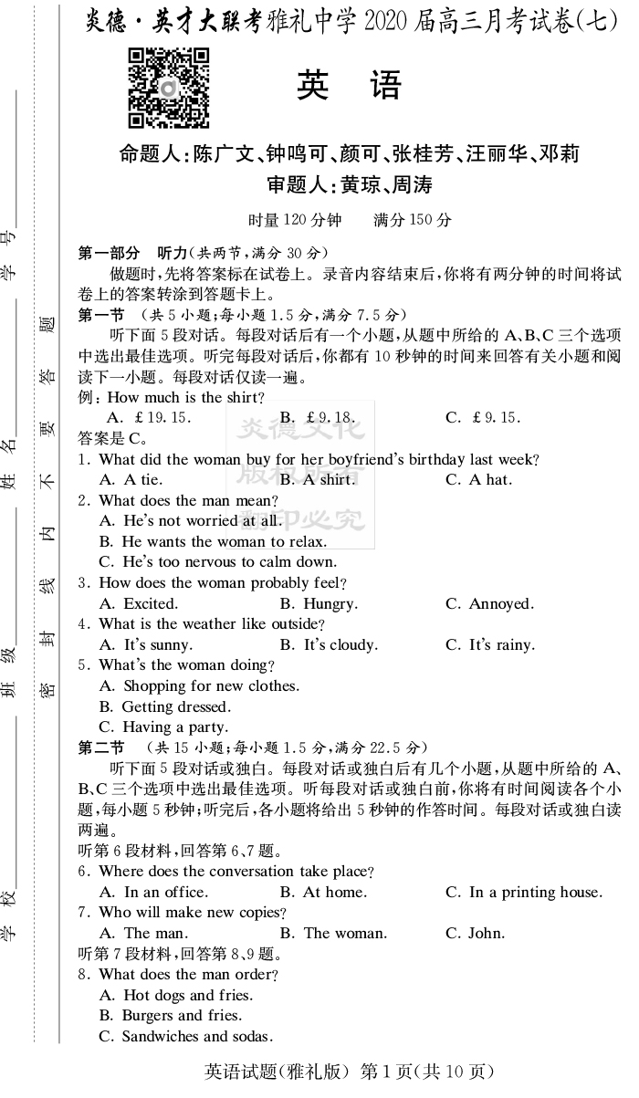上一篇:【文綜】炎德英才大聯考2020屆雅禮中學高三7次月考