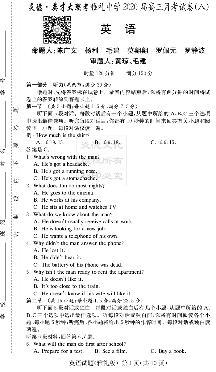 下一篇:【語文】炎德英才大聯考2020屆雅禮中學高三8次月考