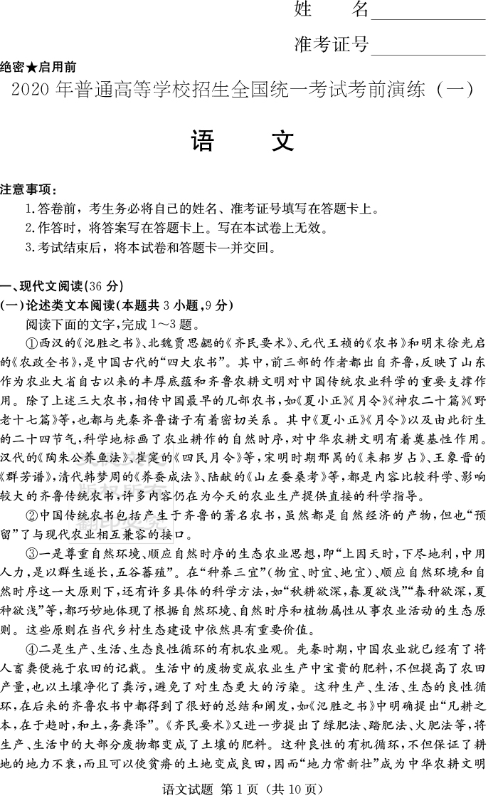 上一篇:【英語】2020年普通高等學校招生全國統一考試考前演練(一)