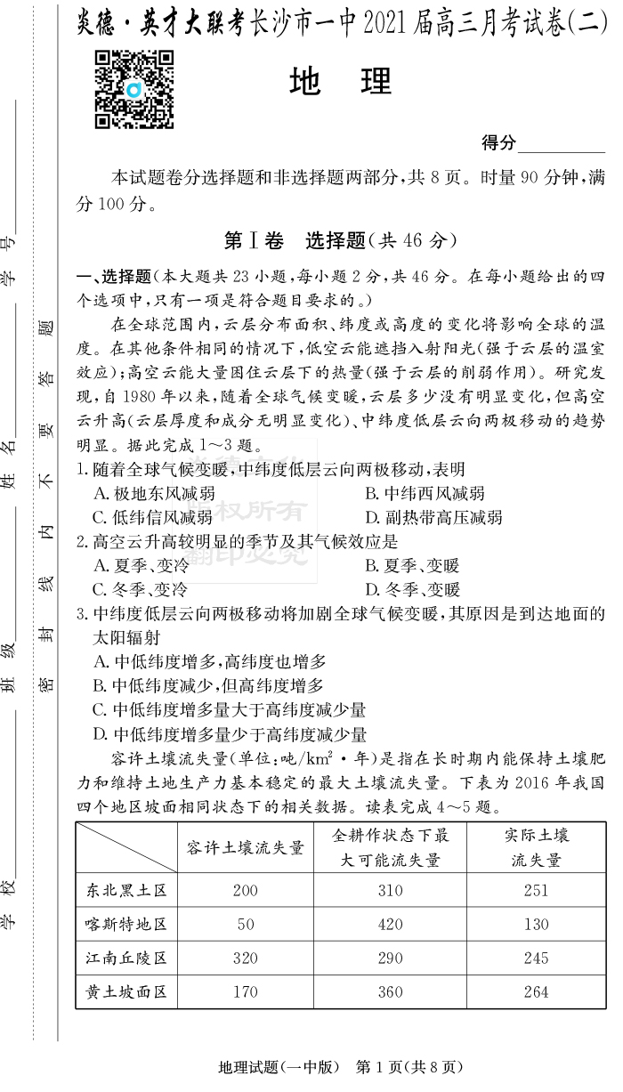 上一篇:【政治】炎德英才大聯考2021屆長沙市一中高三1次月考(高三聯合體12月聯考)