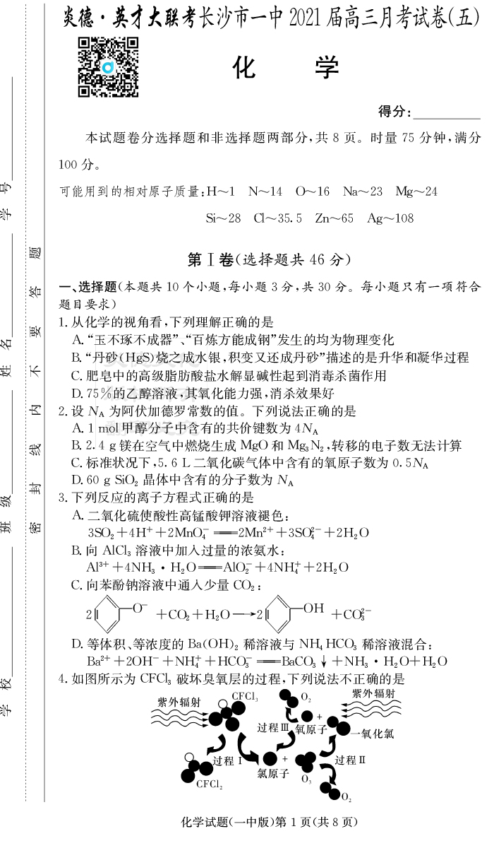 2026長郡中學新高考考前小題沖刺訓練·化學